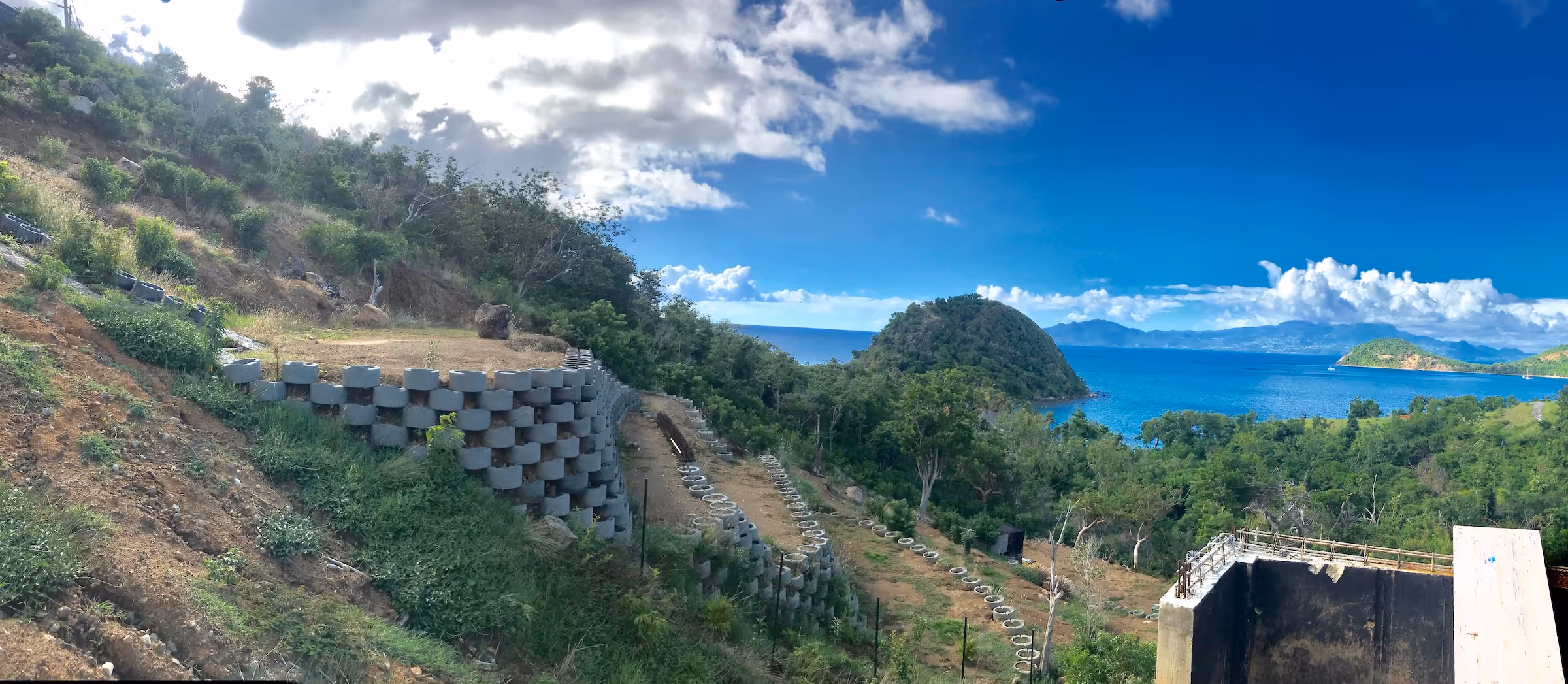 La mise en place d'un massif renforcé par géosynthétiques assure a stabilité pour les grandes hauteurs. Les ATALUS en béton assure la durabilité .