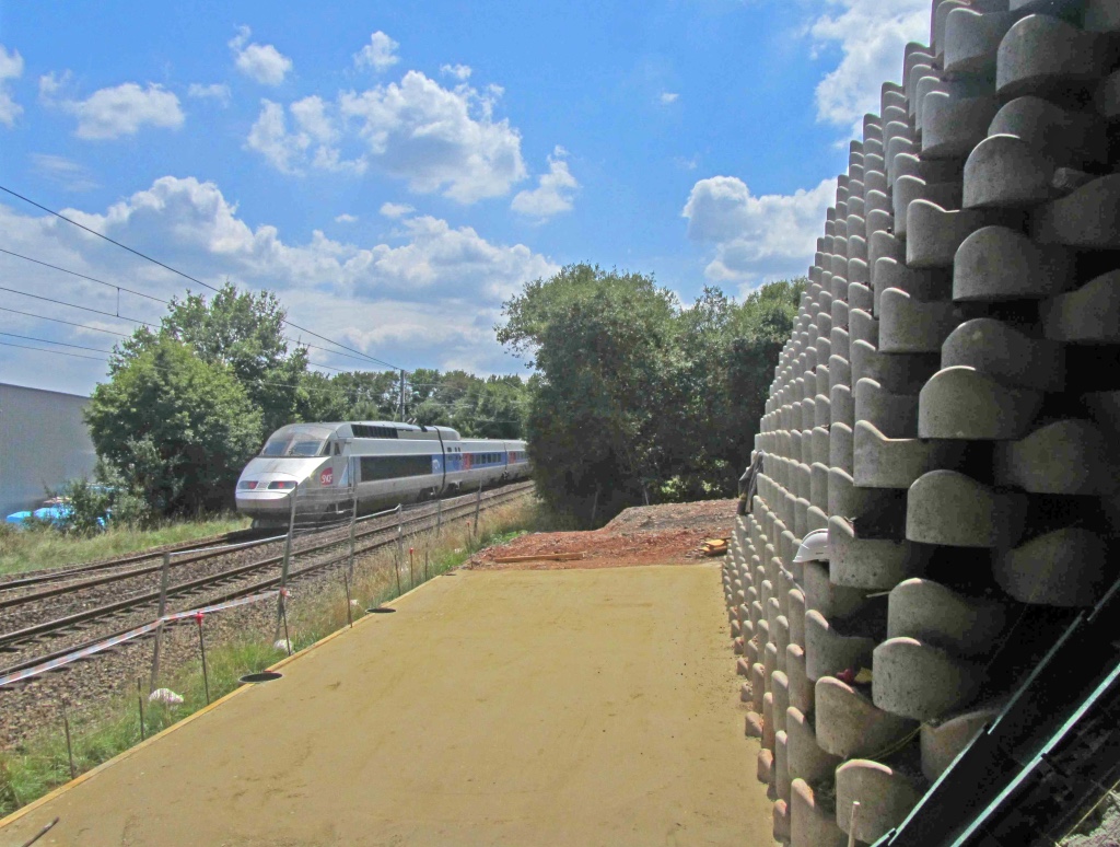 Geotekstilės lakštai yra išvynioti Statmenai sienai, pylimo viduje, didžiausio pasipriešinimo kryptimi.