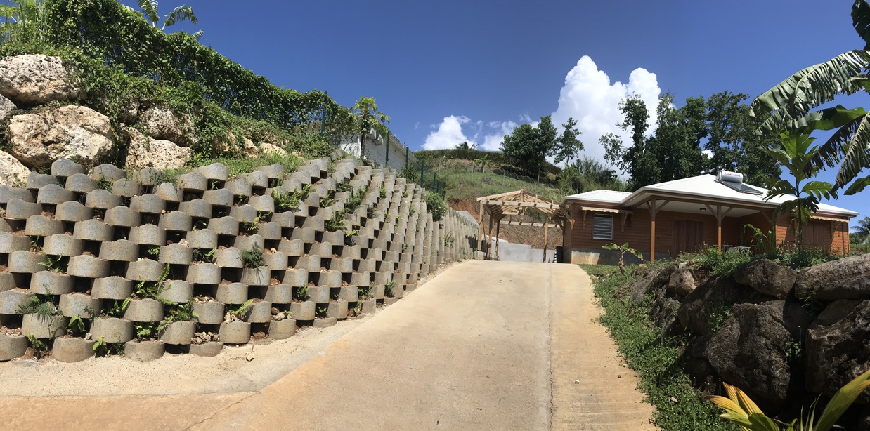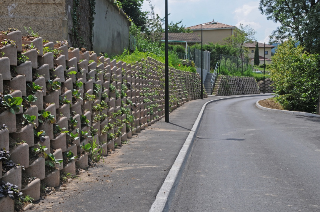 Jis tinka atraminių sienų statybai Nuo 0 iki 3 metrų aukščio, su nuolydis nuo 65° iki 75° be perkrovos. Kai projektas to reikalauja, įgyvendinimas Sustiprintas masyvas su geotekstile (tipas Atanappe) leidžia sukurti sienas iki 4 metrų aukščio, su polinkiu iki 85° , atsižvelgiant į perkrovos ir seisminės zonos.