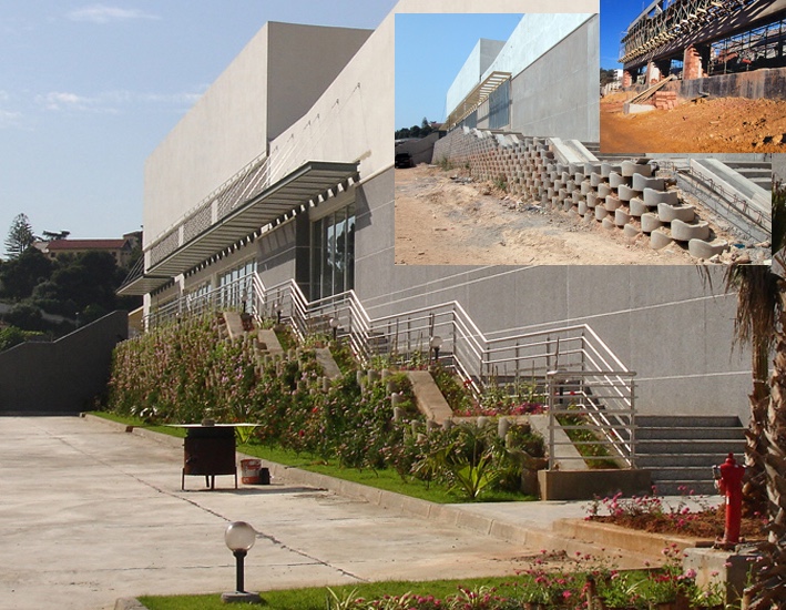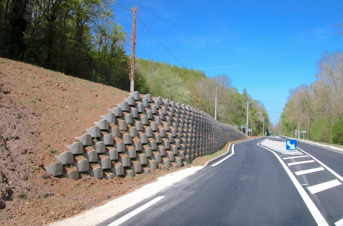 Jis tinka atraminių sienų statybai Nuo 0 iki 3 metrų aukščio, su nuolydis nuo 65° iki 75° be perkrovos. Kai projektas to reikalauja, įgyvendinimas Sustiprintas masyvas su geotekstile (tipas Atanappe) leidžia sukurti sienas iki 4 metrų aukščio, su polinkiu iki 85° , atsižvelgiant į perkrovos ir seisminės zonos.