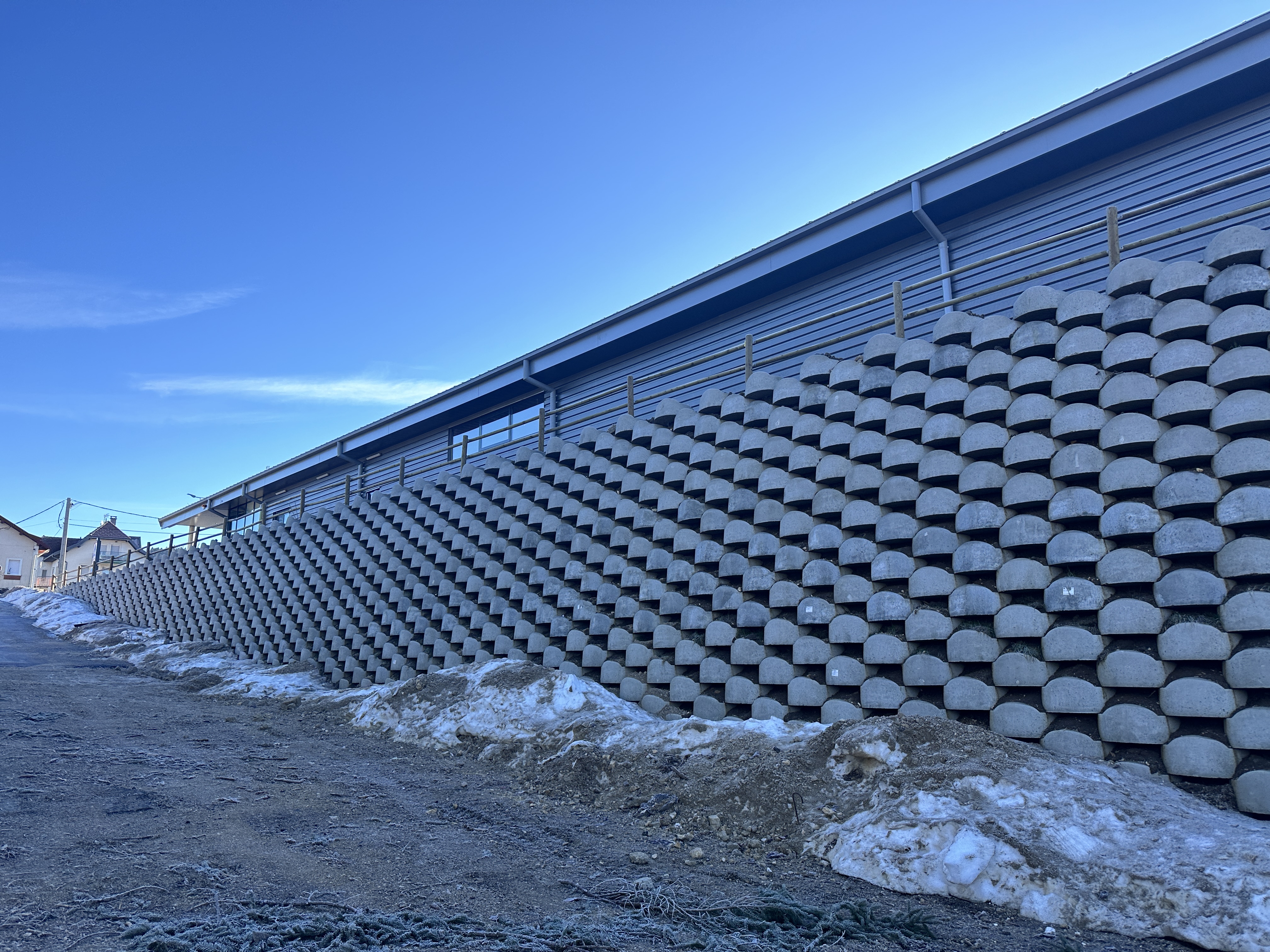 Au total, 3 950 modules ATALUS ont été posés avec un massif renforcé par nappes géotextiles fournies par HUESKER Group.